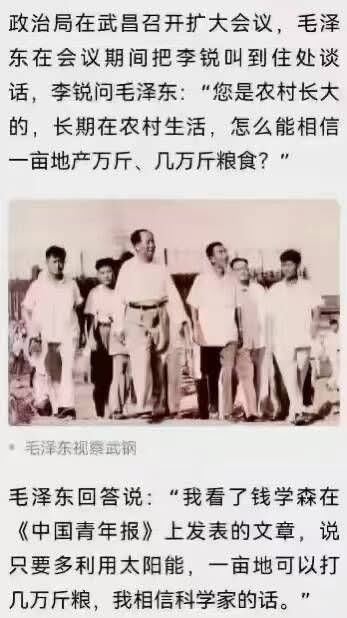 钱学森怒气未消,愤而写下了亩产百万斤的论文,毛主席相信了钱学森的论文,饿死了中国5千万农民。