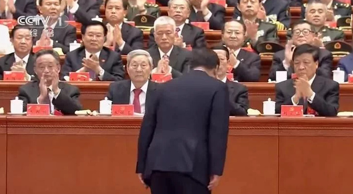 大会早上8时举行,身穿中山装的中共总书记习近平在前…